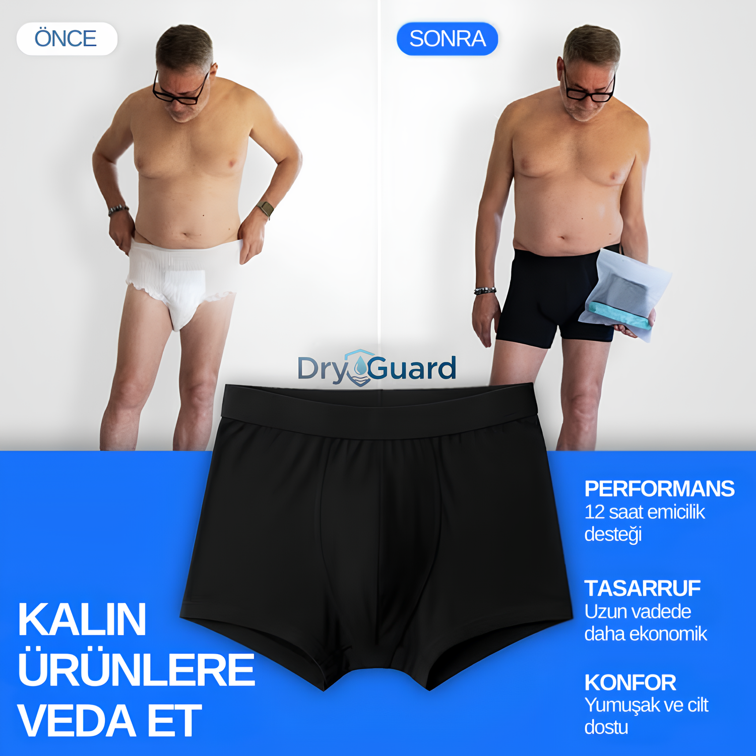 DryGuard Ultra Emici Erkek Boxer, gün içinde kendini daha rahat ve güvende hissetmen için tasarlandı.